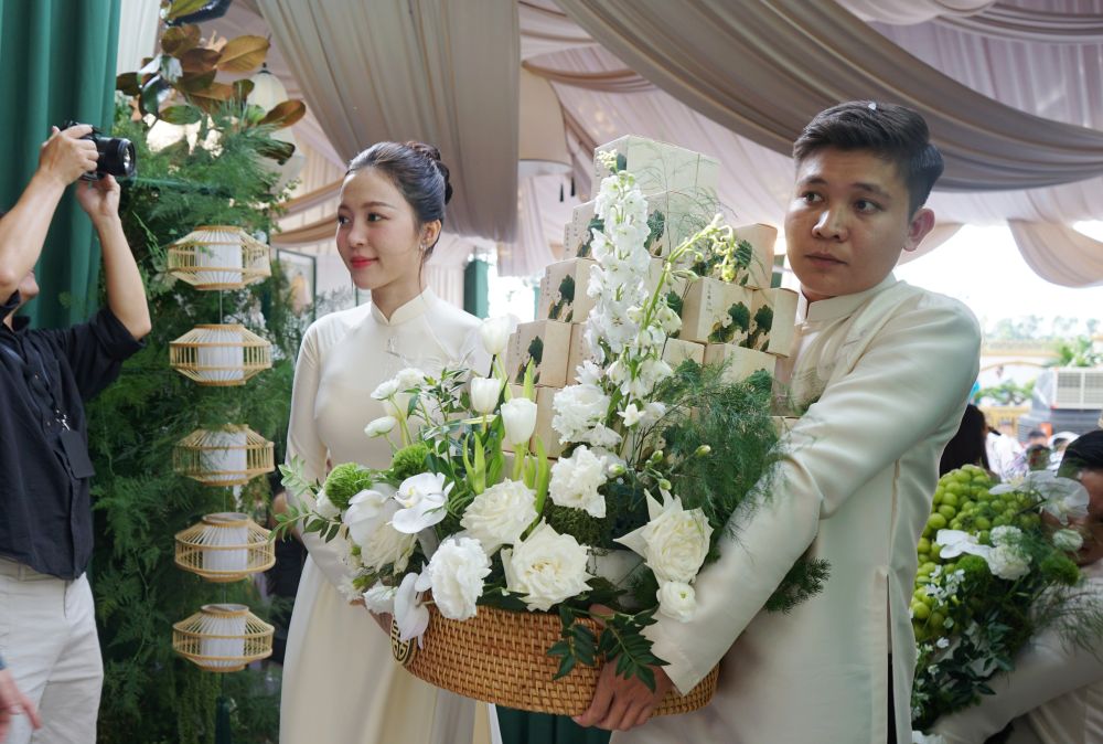 Những hình ảnh ghi lại khoảnh khắc dàn mỹ nhân xuất hiện tại lễ nạp tài của Hoa hậu Đỗ Thị Hà và thiếu gia Tập đoàn Sơn Hải Nguyễn Viết Vương.