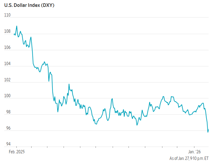 Áp lực lên đồng USD gia tăng do những lo ngại mới xoay quanh vai trò lãnh đạo kinh tế của Mỹ, sau nỗ lực gần đây của Tổng thống Donald Trump nhằm giành quyền kiểm soát Greenland - động thái khiến các đồng minh khó chịu và làm dấy lên lo ngại rằng nhà đầu tư nước ngoài có thể bán các tài sản của Mỹ, bao gồm trái phiếu Chính phủ Mỹ.