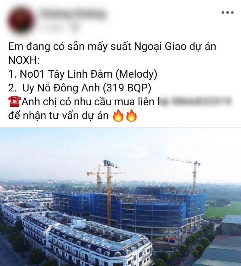 Trái ngược với cảnh người dân "chật vật" nộp hồ sơ, trên mạng xã hội lại rầm rộ các bài đăng rao bán “suất ngoại giao” nhà ở xã hội tại chính dự án này.