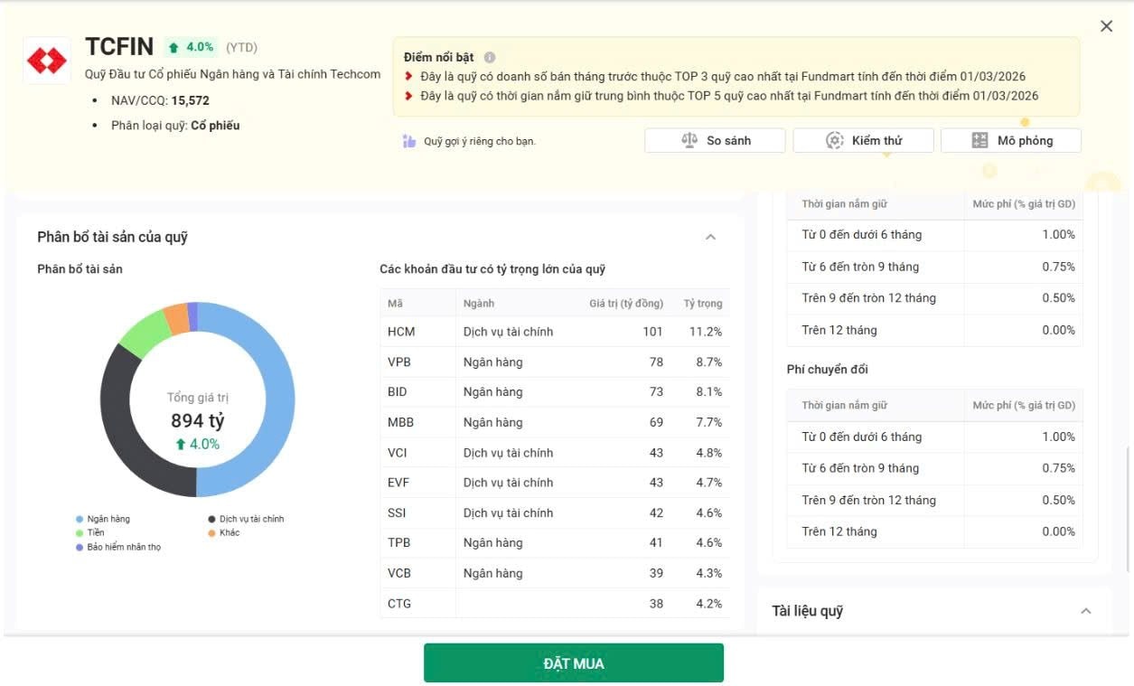 Việc lựa chọn các quỹ đầu tư bám sát trục động lực dài hạn có ý nghĩa then chốt. Chuyên gia Techcom Capital cho biết, Quỹ Đầu tư Cổ Phiếu Techcom (TCEF) và Quỹ Đầu tư Cổ phiếu Ngân hàng và Tài chính Techcom (TCFIN) đại diện cho 2 trục hưởng lợi nổi bật trong chu kỳ mới, thay vì phân bổ dàn trải theo diễn biến của chỉ số chung.