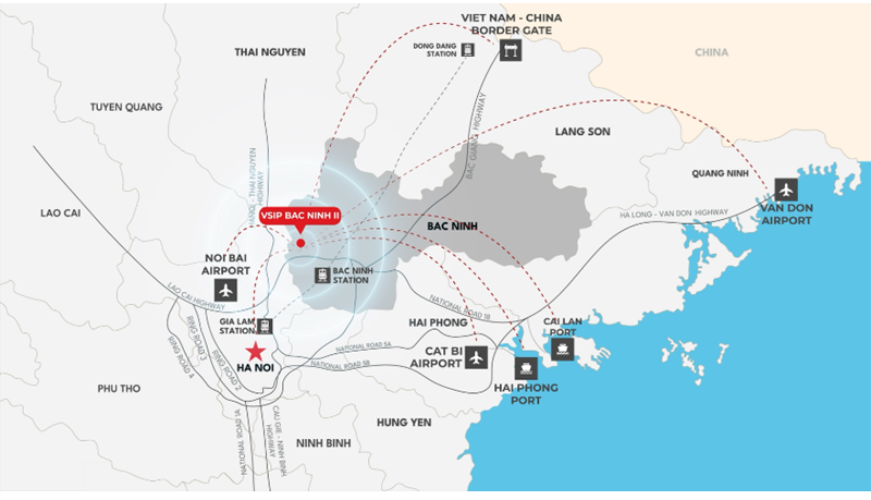 Trong bức tranh phát triển công nghiệp, Bắc Ninh đang nổi lên như một điểm sáng chiến lược phía Bắc, thu hút mạnh mẽ nhà đầu tư trong và ngoài nước. Tỉnh có lợi thế đặc biệt về vị trí địa lý: cách Hà Nội 30 km, cảng Hải Phòng 100 km, chưa đầy một giờ đến sân bay quốc tế Nội Bài và nằm trên tuyến kết nối sân bay quốc tế Gia Bình sắp khai thác. Hệ thống giao thông huyết mạch giúp vận chuyển hàng hóa liền mạch, tạo lợi thế cạnh tranh nổi bật cho các doanh nghiệp sản xuất.