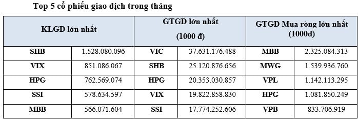 Khối lượng giao dịch bình quân chứng chỉ quỹ ETF đạt hơn 1,51 triệu ETF/ngày với giá trị giao dịch bình quân đạt hơn 44,4 tỷ đồng/ngày, tương ứng mức giảm 46,35% về khối lượng và giảm 47,73% về giá trị giao dịch so với tháng trước.