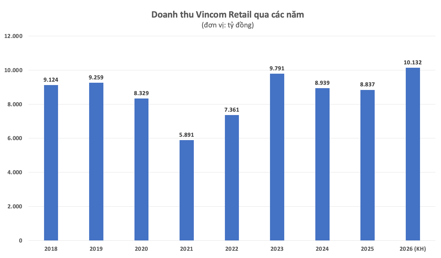 Sáng ngày 23/4, Công ty CP Vincom Retail (mã VRE) tổ chức ĐHĐCĐ thường niên năm 2026. Vincom Retail đặt mục tiêu doanh thu thuần hợp nhất 10.132 tỷ đồng, lợi nhuận sau thuế 5.375 tỷ đồng, lần lượt tăng 16% và 15% so với các chỉ tiêu tương ứng trong năm 2025 sau khi đã loại các khoản thu nhập không thường xuyên.
