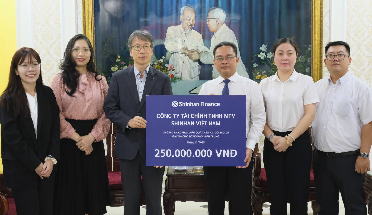 Theo đó, vào ngày 22/12, Shinhan Finance đã ủng hộ 250 triệu đồng thông qua Ủy ban Trung ương Mặt trận Tổ quốc Việt Nam TP. Hồ Chí Minh để góp phần chung tay khắc phục hậu quả thiên tai, hỗ trợ người dân sớm ổn định đời sống và từng bước phục hồi sau những tổn thất do bão gây ra. Sự hỗ trợ này mang ý nghĩa thiết thực trong bối cảnh nhiều địa phương đang nỗ lực tái thiết hạ tầng, ổn định sinh kế và chăm lo các nhu cầu thiết yếu cho người dân.