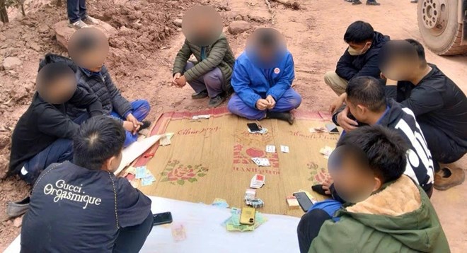 Khoảng 13h ngày 2.2.2026, qua công tác nắm tình hình địa bàn, Phòng Cảnh sát hình sự phối hợp Công an phường Bình Khê kiểm tra khu bãi đất trống thuộc mỏ khai thác vật liệu của Công ty Cổ phần Gốm Đất Việt (khu Tràng Bảng 2, phường Bình Khê), phát hiện 9 đối tượng đang tụ tập đánh bạc trái phép dưới hình thức đánh “liêng” được thua bằng tiền.