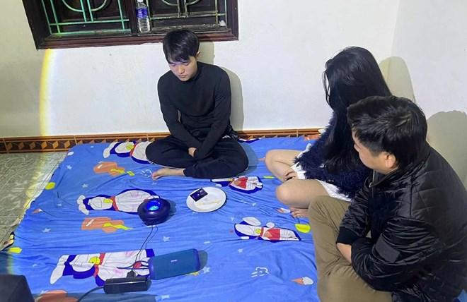 Các đối tượng bị bắt quả tang gồm Đỗ Đăng Đạt (SN 1999), Phạm Văn Trưởng (SN 1990) và Phạm Thị Ngọc Bích (SN 1999). Tại hiện trường, công an thu giữ nhiều dụng cụ dùng để sử dụng ma túy trái phép như túi nilon, đĩa sứ, ống hút giấy, thẻ nhựa, bật lửa, đèn chiếu sáng và loa.