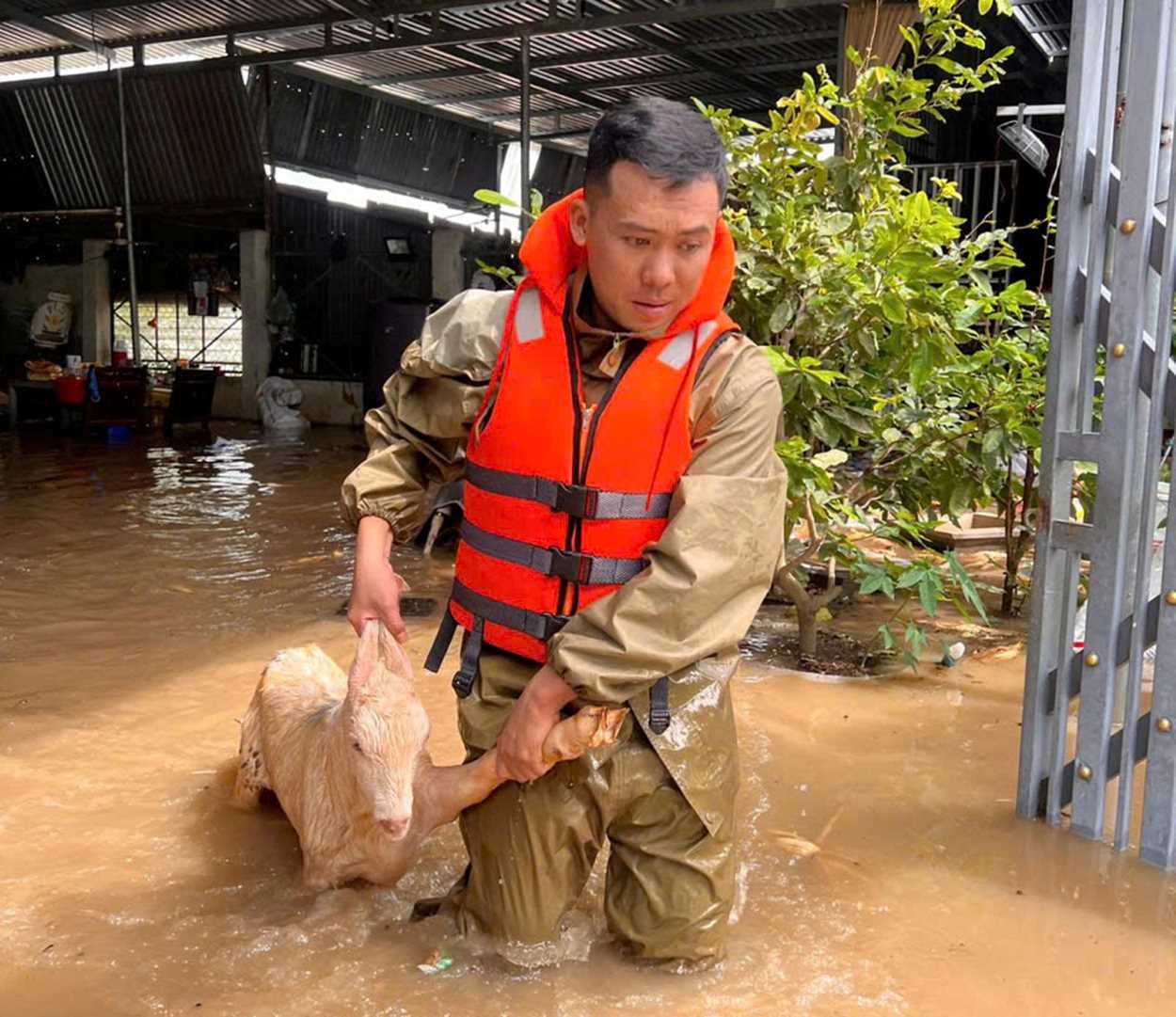 Ngày 17.11, Trung đoàn Cảnh sát cơ động Nam Trung Bộ đã điều động 50 cán bộ, chiến sĩ cùng trang thiết bị cần thiết đến các khu vực ngập lụt, xung yếu ở phường Tây Nha Trang để hỗ trợ người dân.